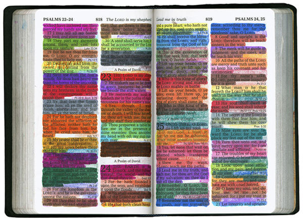 Harrell Fletcher in collaboration with Veda Epling to create these outstanding color-coded bible prints.
